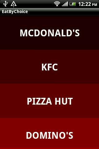 EatBychoice je snadná a dva z jedné aplikace, která poskytuje uživateli jednoduchý zážitek pro procházení nabídek a umístění franšízy hlavních občerstvení v Indii. #}- Najděte své nejbližší otevřené McDonalds, KFC, Pizza...