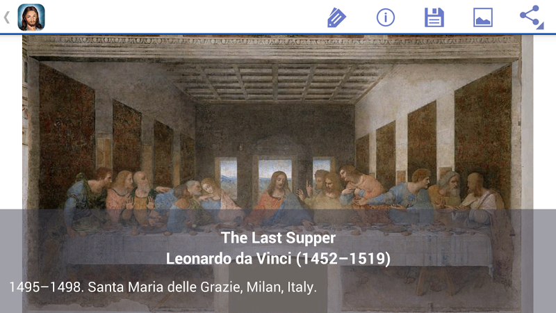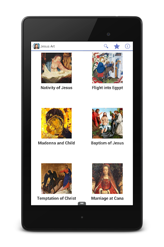 toto je verze Ježíšova umění bez reklam.Existuje nespočet uměleckých děl zobrazujících Ježíšův život trvající téměř 2000 let. většina umění v této aplikaci pochází z období renesance v Evropě, ale existuje řada raně křesťanských děl z prvního tisíciletí, ilustrované biblické rukopisy z rané části druhého tisíciletí, byzantská díla převážně z let 1200-1500, pozdější východní ortodoxní ikonické umění, stejně jako „nové“ umění a umění z 2. století.