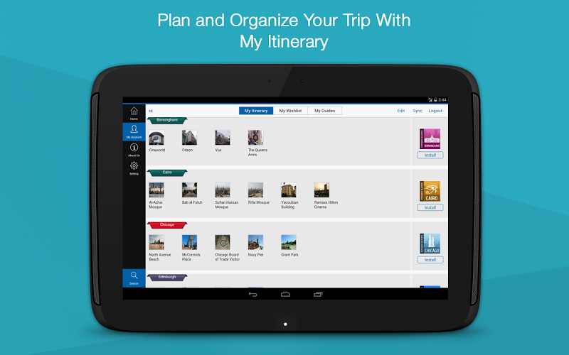 Aktuální, kurátorské městské průvodce data z nejlepších zdrojů na webu pro vaše mobilní zařízení. Jednoduše se přihlaste prostřednictvím svého účtu na Facebooku, přidejte místa do svého itineráře nebo seznamu přání a vytvořte svůj cestovní deník.