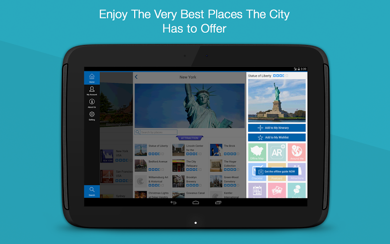 Přímý přístup k více než 50 snadno navigovaným cestovním průvodcům do hlavních měst na světě, s tisíci zájmových bodů, včetně muzeí a parků.