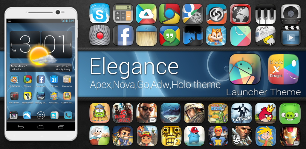 holo launcher: { #} Nastavení vzhledu> ICON Pack> Elegance