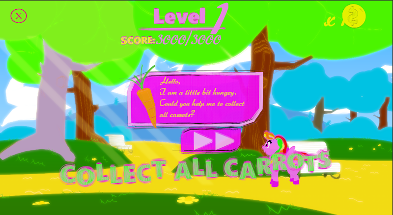 hrajte si se svým poníkempomozte svému malému poníkovi sesbírat všechny mrkve ze stromu a naučte svého malého poníka létat nad oblohou.
