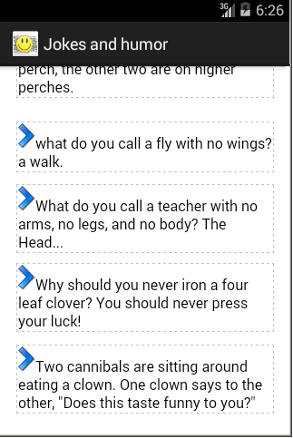 Vtip je něco, co mluví, písemné, nebo Hotovo s vtipným úmyslem. [1] Vtipy může mít mnoho různých podob, například jedno slovo nebo gesto (vlastníci posuzována v kontextu), což je otázka-odpověď, nebo celou povídku . Slovo "vtip" má několik synonym, zachází včetně wisecrack, roubík, žert, vtip, žert a Jape. [1] k dosažení jejich konec, vtipy mohou zaměstnávat ironie, sarkasmus, slovní hry a další zařízení. Vtipy Může mít pointu, tedy konec, aby byl vtipný. (WikipediaV Současné Době Nabízíme Verzi 1.1. Toto Je Naše Nejnovější, Nejvíce Optimalizovaná Verze. Je Vhodný Pro Mnoho Různých Zařízení. Zdarma Ke Stažení Přímo Apk Z Obchodu Google Play Nebo Jiných Verzí, Které Hostujeme. Kromě Toho Si Můžete Stáhnout Bez Registrace A Bez Nutnosti Přihlášení.