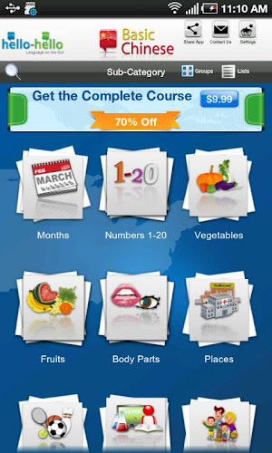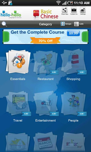 hello-hello má také aplikaci pro konverzační kurzy, což je robustní jazykový kurz s 30 konverzačními lekcemi. kurzy byly vyvinuty ve spolupráci s americkou radou pro výuku cizích jazyků (actfl), což je největší sdružení učitelů a administrátorů všech jazyků na všech úrovních a slouží více než 12 000 pedagogů.