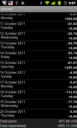 - samostatně zobrazuje, kolik peněz bylo utraceno v poslední konverzaci dne, za aktuální měsíc atd.