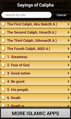 Analýza A Revize Aplikací Pro Android: Sayings of Caliphs (Islam), Vyvinuté Společností ImranQureshi.com. Uvedeno V Kategorii Knihy A Referenční Materiály. Aktuální Verze Je 1.3, Aktualizována Na 19/10/2017 . Podle Recenzí Uživatelů Na Google Play: Sayings of Caliphs (Islam). Dosaženo Více Než 50 Tisíc Instalací. Sayings of Caliphs (Islam) Má V Současné Době Recenze 229, Průměrné Hodnocení 4.4 Hvězd