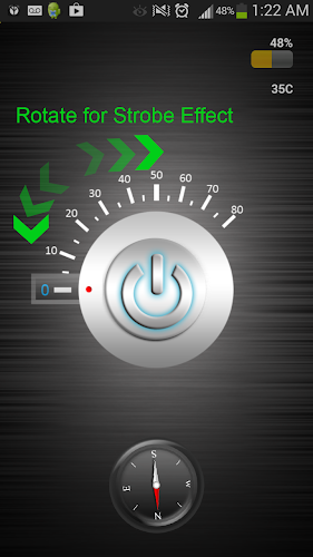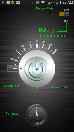Není to jasnější než toto !! Nejjasnější osvětlovací nástroj v kapse s blikajícím/strobem. Upravte blikání/rychlost strobového otočením strobového knoflíku. Také se nazývá Torch nebo Linterna, rozjasní vaši noc jako nikdy předtím. Má také vestavěný měřič baterie, který vám pomůže sledovat odtok baterie. Vestavěný v kompasu vám ukáže, kterým směrem se vedete.