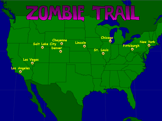Zombie Trail je hra přežití a hrůzy!Poté, co se svět rozpadl od invaze zombie, musíte vy a vaši členové strany cestovat po celé zemi, aby dosáhli bezpečného města, ve kterém žijí. Mají hlad a roztrhnou vaši párty od sebe, pokud dostanou šanci.