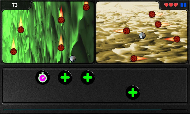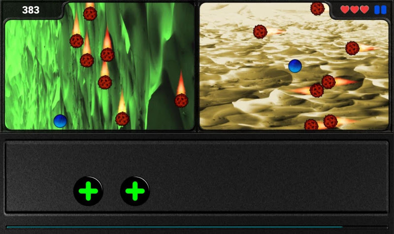 Zvládli jste staré dobré závodní hry, ve kterých se úspěšně vyhýbáte zasažení soupeřů při jejich průchodu. A máte dovednosti pilota, pokud jde o ovládání virtuální roviny nebo kosmické lodi. Myslíte si, že jste dosáhli limitů svého herního zážitku? Nyní vám představujeme výzvu hrát dvě hry současně. Budete si moci rozdělit vaši pozornost a stále být dobrý?Triospace vám dává kontrolu nad dvěma planetami. Řídíte tyto planety, abyste se vyhnuli havárii meteorů. Jedna z planet se pohybuje vodorovně a druhá se pohybuje svisle. Otočte zařízení doleva a doprava a ovládejte horizontální planetu a podobně jej otočte dopředu a dozadu, abyste ovládali vertikální pohyblivou planetu. Některé bonusy vám dávají štít, jiné dávají další život a jiné vám dávají další bonusové body na druhé straně, některé bonusy snižují váš gametime. Měli byste je shromažďovat pečlivě a strategicky!