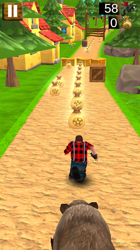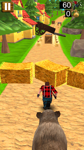 utečte a utečte před zlým nevrlým medvědem a držte prokletou sekeru !sbírejte drahokamy a utíkejte jako o život, skákejte přes hromady sena nebo polámané stromy a rychle klouzejte pod nebezpečné ploty! unikněte medvědovi a staňte se skutečným dobrodruhem, pokud na to máte...