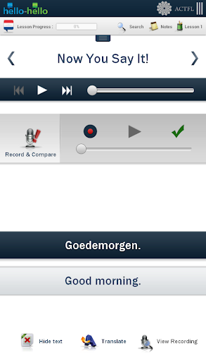 Hello-Hello Dutch je zábavný způsob, jak se naučit nizozemský jazyk na cestách! Všechny lekce jsou konverzační na základě realistických dialogů a situací, spíše než ze sbírky slov a frází mimo kontext. Pro spuštění aplikace nemusíte být připojeni k sítím Wi-Fi nebo 3G. S Hello-Hello Holanďanem budete moci dělat lekce a praktikovat slovní zásobu kdykoli, kdekoli, kde rozvíjíte všechny dovednosti, které potřebujete pro komunikaci v cizím jazyce. Všechny lekce byly zaznamenány rodilými mluvčími, takže se můžete naučit správnou výslovnost. (Vezměte prosím na vědomí, že v nadcházejících aktualizacích přidáme další slova a fráze.)- Uložte si vlastní poznámky jakoukoli lekci.
