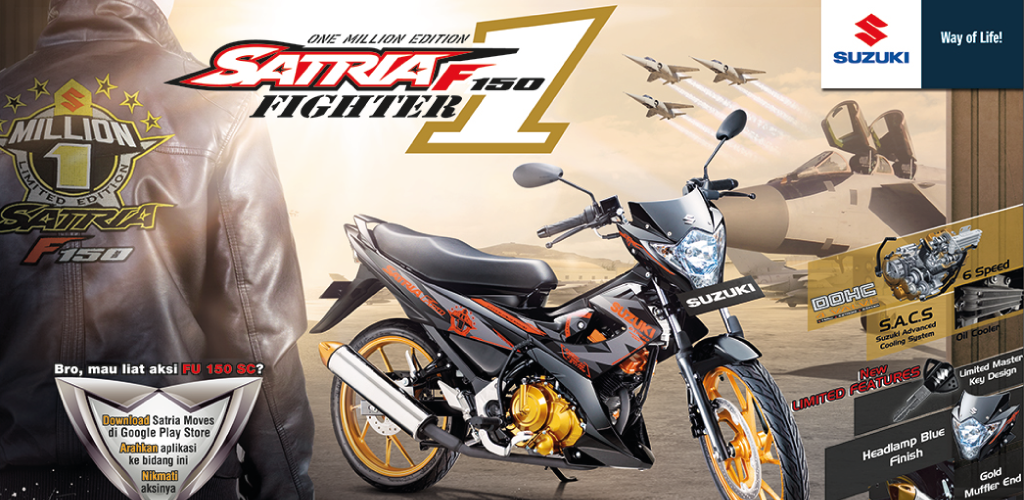 buďte první, kdo si do smartphonu pořídí aplikaci satria moves, a podívejte se na další úroveň videoreklamy na suzuki satria f150!
