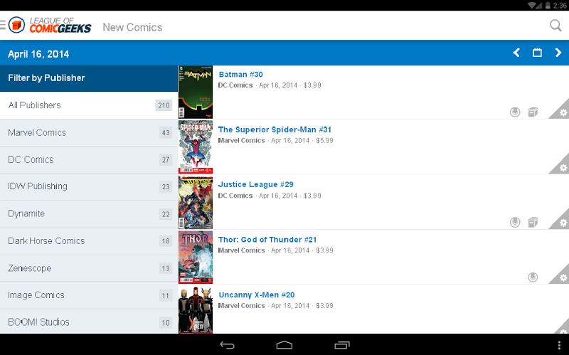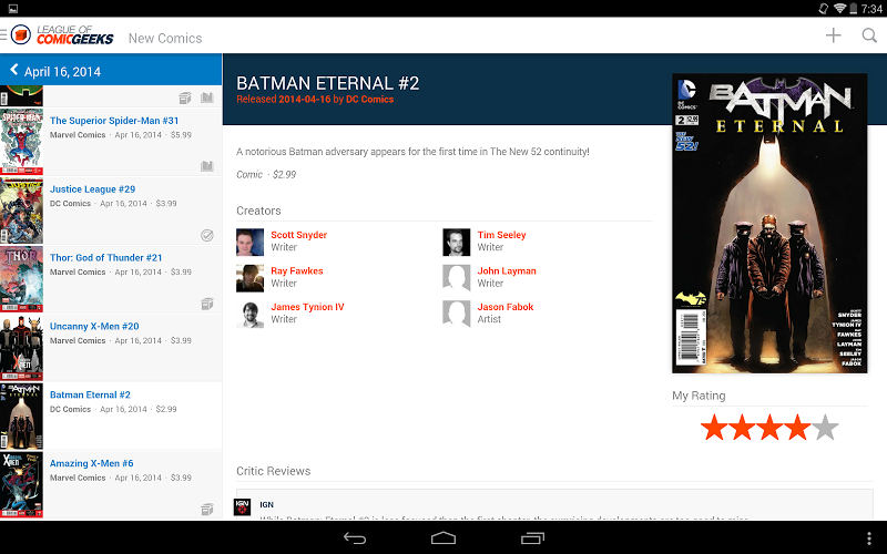 Aplikace Comic Geeks se pravidelně synchronizuje s vaší činností z LeagueOfcomicgeeks.com a naopak, když je připojena k síti { #}