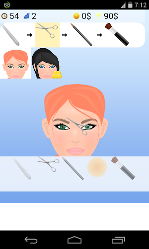 scissors, tweezers, hairs, eyes makeup and more in the free style game.
