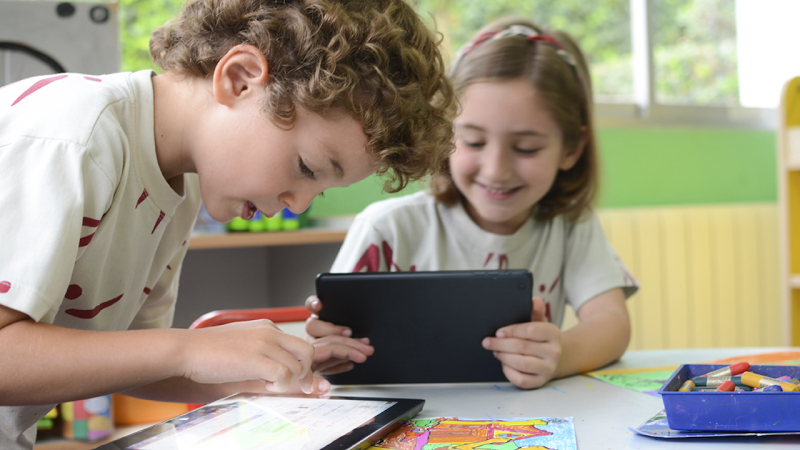 Aplikace kombinuje tradiční školní práci s novými technologiemi. Dítě vytváří obraz-ruka žáka dává barvu příběhu.