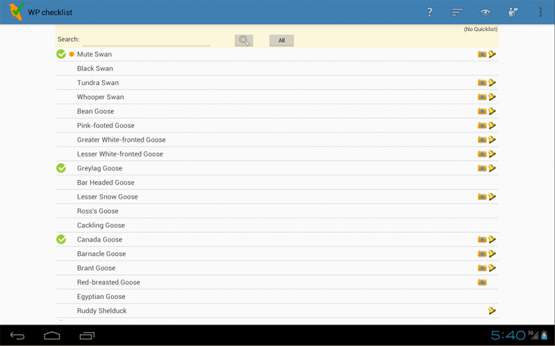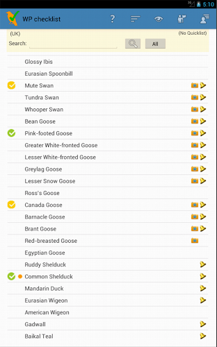 - Žádné rychlé seznamy (vlastní filtrování seznamů ptáků pro vaše polohu) Může zpomalit aplikaci.