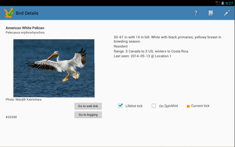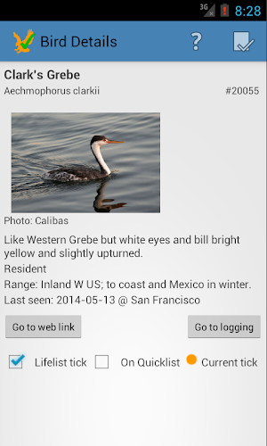 Toto je jedna z řady aplikací Birding Controllist pro mobilní telefony a tablety Android. Existují žádosti o Austrálii, Nový Zéland, Spojené státy (s výjimkou Mexika a Jižní Ameriky), Western Palearctic (Velká Británie a Evropa), Pacific Islands, Jižní Afrika a Ekvádor/Peru/Bolivia. Zkontrolujte prosím soubor README na tomto webu ke stažení, abyste věděli, jak to udělat. Fotografie a zvuky nejsou zahrnuty do balíčku stahování z trhu Android. není určen k nahrazení polního průvodce. Očekává se, že uživatelé budou mít dobrou znalost ptáků, které vidí, a tuto aplikaci použijí pro: