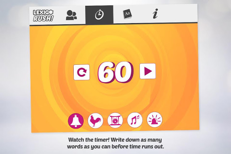 - vybrat si z pěti různých zvukových efektů, když vyprší čas