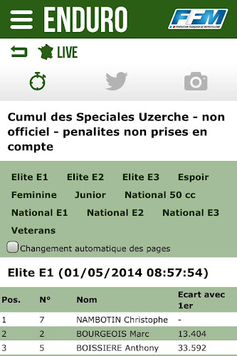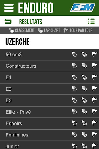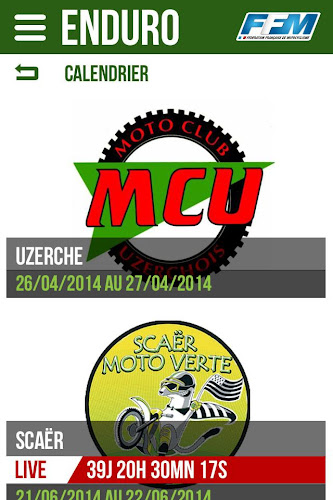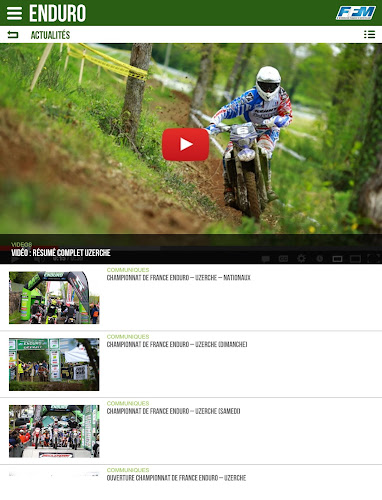 Zdarma ke stažení Oficiální aplikace Enduro France F.F.M.Najděte všechny výsledky živé, fotografie a nejnovější informace o francouzském šampionátu Enduro F.F.M.