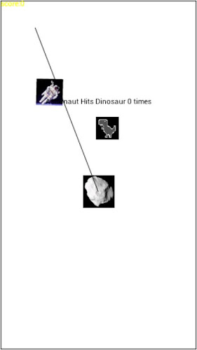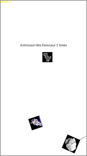- Přetáhněte elastický lano, nechte Stone zasáhnout astronaut, astronaut Bounce, aby zasáhl dinosaur.