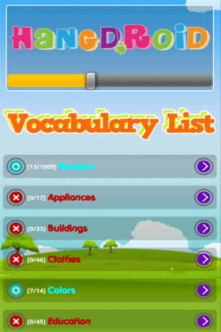 * Uživatel může vybrat kategorie nebo může jít za náhodné slovy. Progress.
