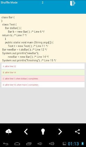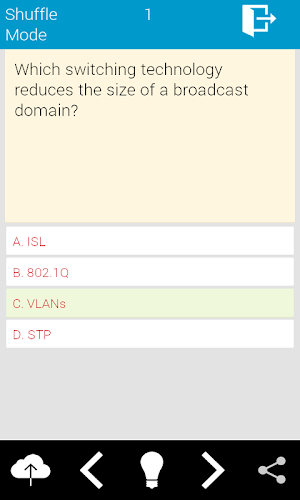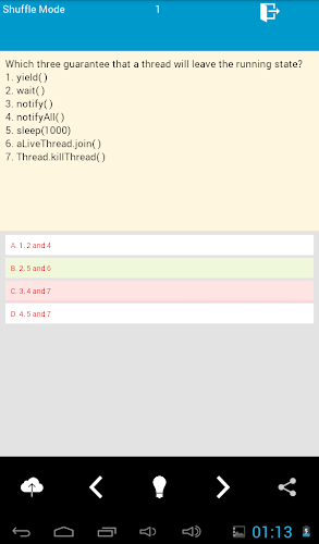 V tomto režimu náhodně více možností výběru z různých témat sítě Will Will požádat. Dotaz můžete označit jako důležitou a ukládat jako vybraná otázka. Tyto vybrané otázky můžete procvičit ve vybraném režimu. Jakmile jste odpověděli na otázku, můžete také zkontrolovat vysvětlení odpovědi.