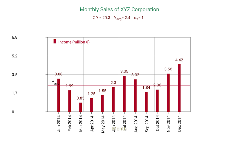 Provádějte jednoduché statistiky o prodejních údajích, abyste našli celkový prodej, průměrný prodej, standardní odchylku od průměru a další. Statistiky by například mohly pomoci poukázat na účinnost propagační kampaně o prodeji. mohou být zobrazeny také na grafu plátně. Ukázalo se, že to je velmi užitečné, jak se zvyšuje počet řádků dat. kolega ze samotné aplikace.