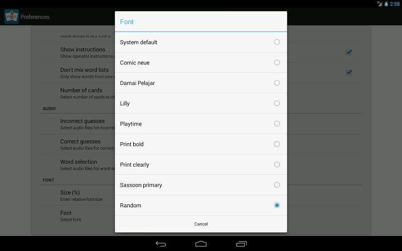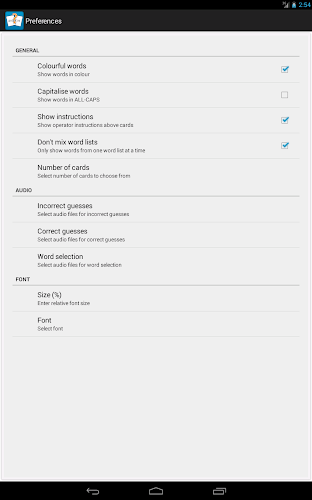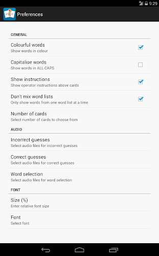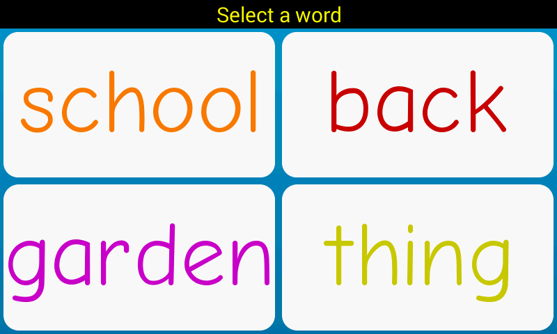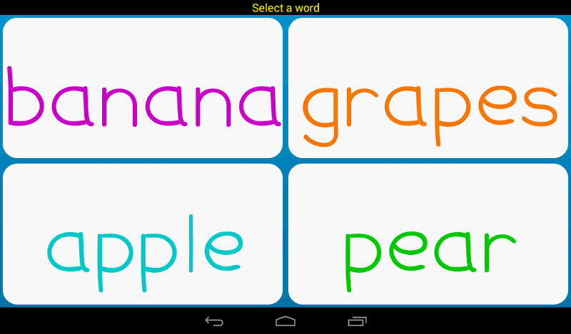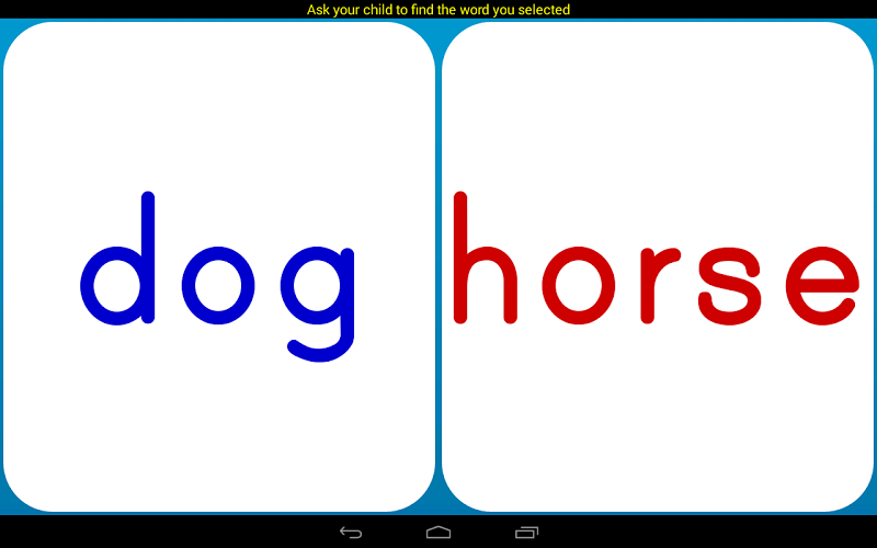 Word Quiz Free je jednoduchá hra s hádáním flash karty, která pomáhá učit děti, batolata a malé děti, které si můžete přečíst. Word Quiz Free není hra pro děti, které by si mohly hrát samy. Je to nástroj, který vám pomůže, zatímco budete interaktivně učit své děti číst. Náhodné sady karet jsou vytvořeny na základě vašich preferencí. Vyberete kartu a požádáte své dítě, aby se pokusilo najít kartu pomocí vybraného slova. Words- Capipitize Words