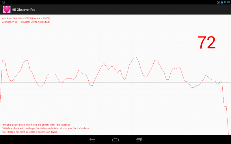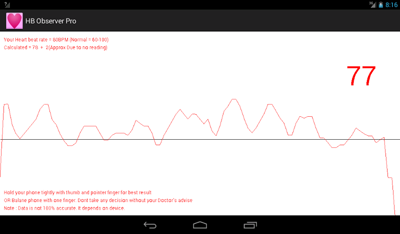 * Můžete jej dát na hruď pro lepší výsledek. Může se lišit v závislosti na přesnosti zařízení. To je pouze pro zábavu. Bez rady svého lékaře nepřijměte žádné vážné rozhodnutí o zdraví. Některé výsledky také ukazují, že udržování vašeho telefonu poblíž hrudníku může způsobit rakovinu prsu, takže je vhodné, aby ho tam dlouho neudržovalo.