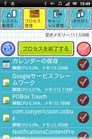 - Optimalizace systému: Ukončení zbytečných procesů a čištění dat mezipaměti pro zlepšení rychlosti zařízení. Processes.
