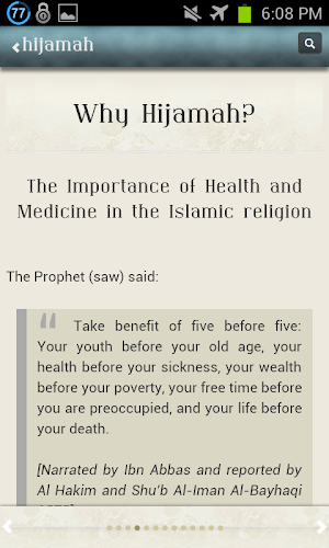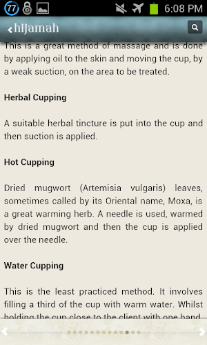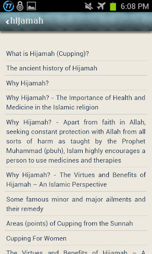 - Citace z lékařských prací a zpráv islámských vědců, kteří se rozvíjejí na lékařský přínos Hijaamah v případě hlavních nemocí a nemocí