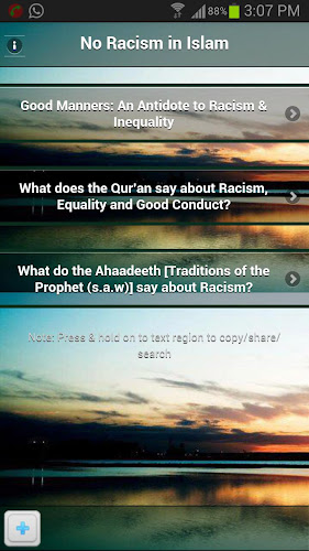 Toto je bezplatná aplikace vysvětlující koncept žádného rasismu v islámu, což dává různé ahaadeeth a příklady související s rasismem, rovností, způsoby atd. Islaam je náboženství, které podporuje rovnost, bratrství a...
