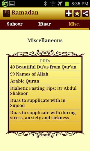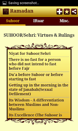Tato aplikace získá popis a určitá rozhodnutí Suhoor (Sehri) a Iftaar spolu s dalšími ramadánskými dobrotami, jako jsou PDF a další znalostní základna