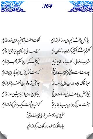 Divan Hafiz Shirazi.obsahuje Ghazals a básně z velkého (darsi/perského) Sufi, Hafiz Saheb Shirazi.