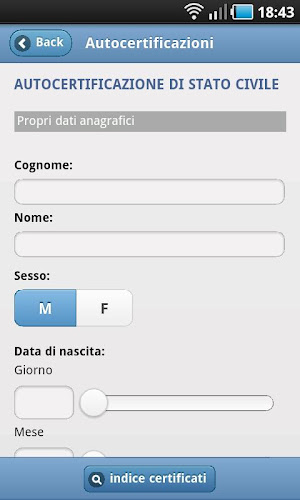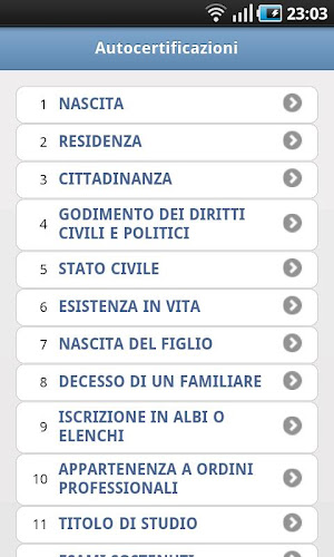 Článek 46 prezidentského dekretu č. 445 ze dne 28. prosince 2000 uznává právo občanů předložit namísto tradičních požadovaných osvědčení svůj osobní status a požadavky prostřednictvím zvláštních prohlášení podepsaných zúčastněnou stranou. podpis již není třeba ověřovat.pro použití vlastní certifikace přímo na přepážkách veřejných úřadů musí občan vyplnit požadovaný formulář, který, pokud jde o prohlášení namísto potvrzení, nepodléhá žádné autentizaci.