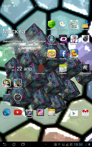 min android 4.0 (úroveň API 14).Živé tapety v podobě rotujících skleněných kostek.