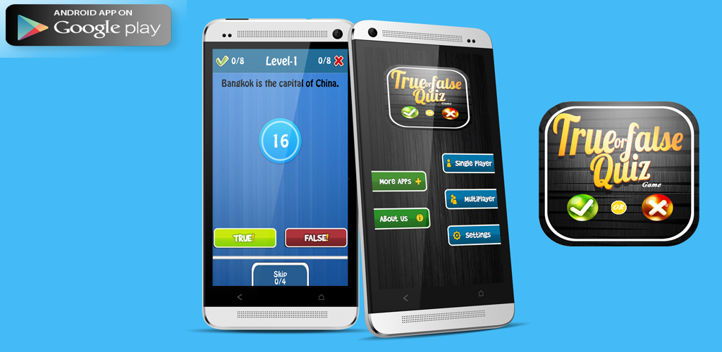 Pravda nebo falešná hra kvíz, je skvělá hra, testovat váš rozum. Pojďme se vyzvat v jednom hráči nebo si hrát se svým přítelem v multiplayeru.Jedná se o kvízovou hru poskytuje znalosti geografie, sportu, vědy, historie a dalších předmětů zajímavých. Tato hra tedy v zásadě zlepší vaše znalosti o různých tématech, ale také vás pobaví, aby se relaxovala. Oba uživatelé mohou vidět otázky na vlastní straně a odpovědět a musí zrychlit odpověď. Všechny věkové věky.