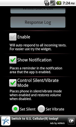 * Added choice between silent or vibrate when enabling app