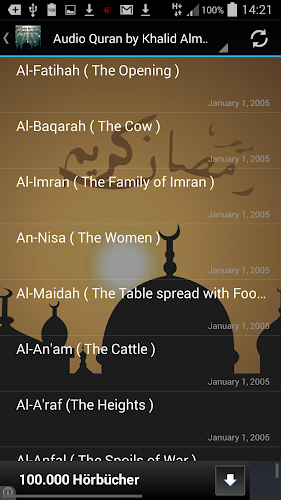 Analýza A Revize Aplikací Pro Android: Audio Quran by Khalid Almohana, Vyvinuté Společností AMSApps. Uvedeno V Kategorii Hudba A Zvuk. Aktuální Verze Je 2.0, Aktualizována Na 28/09/2018 . Podle Recenzí Uživatelů Na Google Play: Audio Quran by Khalid Almohana. Dosaženo Více Než 440 Instalací. Audio Quran by Khalid Almohana Má V Současné Době Recenze 1, Průměrné Hodnocení 5.0 Hvězd