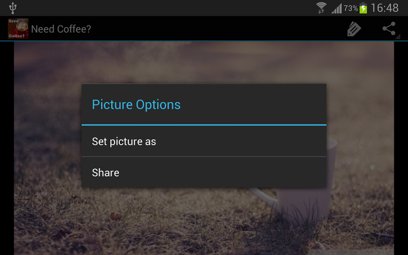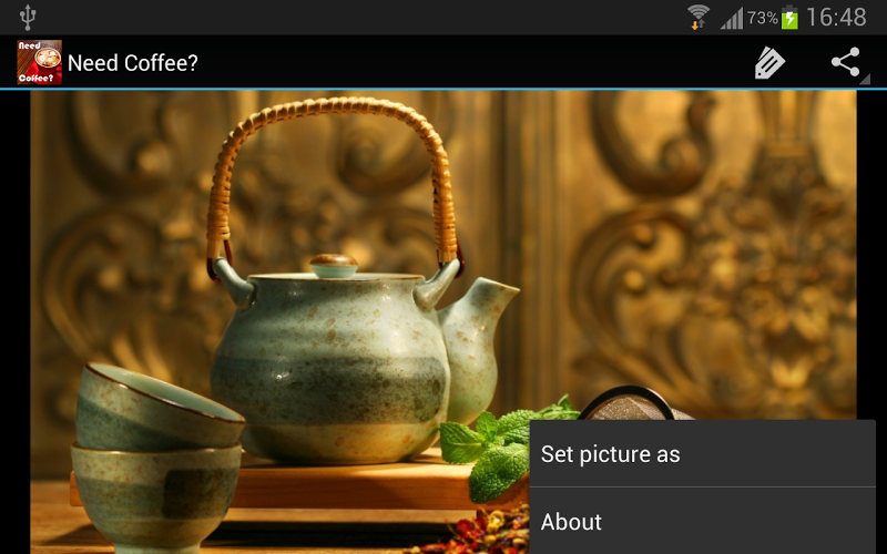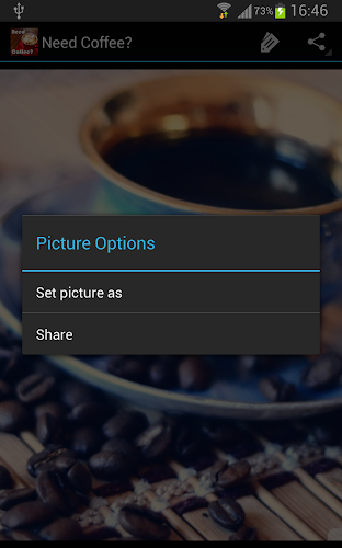 Analýza A Revize Aplikací Pro Android: Need Coffee?, Vyvinuté Společností Andromeda Galaxy. Uvedeno V Kategorii Fotografie. Aktuální Verze Je █▬█.█.▀█▀, Aktualizována Na 25/07/2014 . Podle Recenzí Uživatelů Na Google Play: Need Coffee?. Dosaženo Více Než 100 Instalací. Need Coffee? Má V Současné Době Recenze 8, Průměrné Hodnocení 4.1 Hvězd