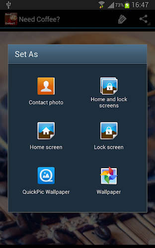 **This application sets the picture as wallpaper with/without resizing.****Select a picture from the gallery, ==>>>tap on