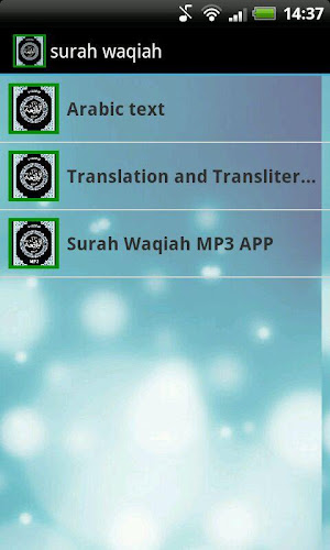 Tato aplikace obsahuje arabský text, anglický překlad a přepis.Výhody Surat Al Waqiah (56)