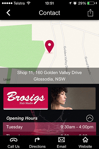 brosigs hair studio se nachází v nákupní vesnici glossodia, nsw. s více než 20letými zkušenostmi v oboru je naším cílem poskytovat ty nejlepší produkty a služby v příjemném prostředí, abyste mohli vypadat a cítit se báječně. kromě našich obecných vlasových služeb poskytujeme ošetření vlasů a pokožky hlavy, svatební a svatební služby, prodlužování vlasů nebo řas a kosmetické služby, jako je depilace voskem, luxusní manikúra a luxusní pedikúra.stáhněte si naši bezplatnou aplikaci a přečtěte si o nás a našich službách více. můžete také provádět rezervace nebo poptávky, požadovat odměny za věrnost, číst a zanechávat recenze, prohlížet galerie obrázků, posílat nám fotografie do našich galerií, sledovat naše nejnovější zajímavé události a komunikovat s našimi sociálními médii, jako je facebook.
