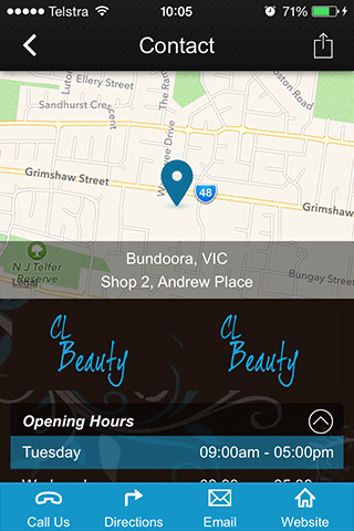 CL Beauty se nachází v Bundoora, Victoria. Nabízíme řadu kosmetických služeb, včetně voskování, nehtů, slupky, obličeje a dalších. Nabízíme také školení a produkty dostupné ke koupi. Působíme více než 6 let, jsme 100% odhodláni poskytovat vám personalizované a profesionální služby. Naším cílem je, aby vaše zkušenost byla nezapomenutelná tím, že vám poskytne čestné, přátelské a relaxační prostředí. Jsme tu, abychom zmírnili vaše stres, zlepšili váš vzhled a zlepšili vaši obecnou pohodu.Stáhněte si naši bezplatnou aplikaci a přečtěte si více o nás a našich službách. Můžete také provádět rezervace nebo dotazy, požadovat odměnu za věrnostní, číst a nechat recenze, posílat nám fotografii pro naše galerie, sledovat a účastnit se našich nejnovějších zájmových událostí a zapojit se s našimi sociálními médii, jako je Facebook.