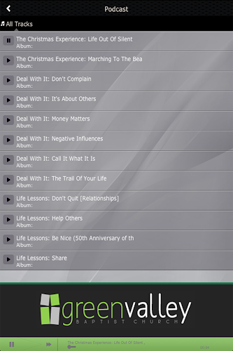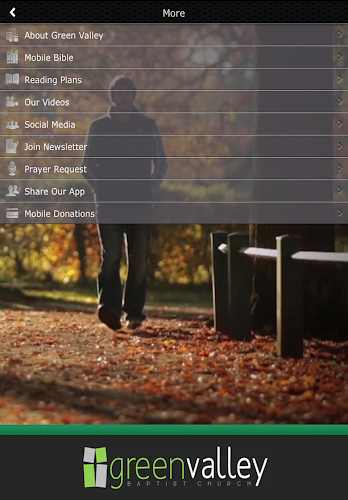 At Green Valley, our strategy and our intention is to create environments where people are encouraged to learn about God, love God, live for God and lead others to do the same.The Green Valley Baptist Church mobile app is a platform that allows