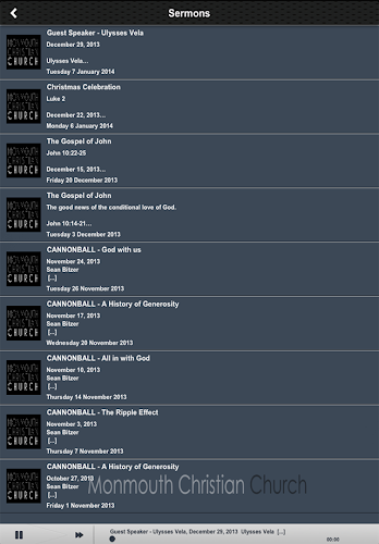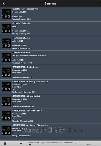 • Audio Sermons - Uživatel může poslouchat a stahovat více kázání na cestách.