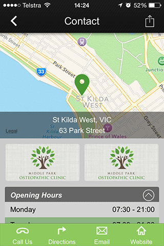 Osteopatická klinika Middle Park se nachází v St Kilda West ve Victoria. Zatímco jiné metody léčby mohou poskytnout okamžitou, krátkodobou úlevu, osteopatie je jedinečně navržena tak, aby se dostala k samotnému kořenu vaší stížnosti.Jsme vysoce kvalifikovaní, oddaní odborníci s misí, kteří pomáhají za vás za sebou dát bolest a nepohodlí vašeho zranění, abyste se mohli pohybovat vpřed, neomezeni životem mobilního a bezbolestného života. Náš specializovaný tým osteopatů spolupracuje na výslovném přizpůsobení léčby vašemu individuálnímu věku a životnímu stylu. Můžeme poskytnout léčbu, prevenci a řízení zranění a bolesti páteře, kloubů, vazeb a svalů. Můžete si také rezervovat schůzky nebo provádět dotazy, poslat nám fotografii pro doporučení pro léčbu, číst a ponechat recenze, sledovat a účastnit se našich nejnovějších zájmových událostí