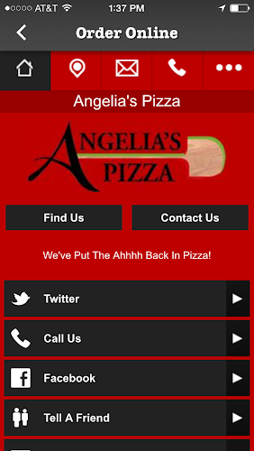 Funkce aplikace Angelia's Pizza iPhone FunkceCelá nabídka - Celá naše nabídka lahodných pizzy, stran, nápojů, dezertů a doplňků!