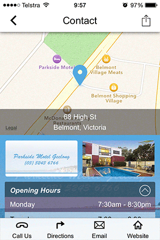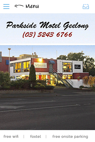 Motel Parkside v Geelong nabízí hostům vysoce kvalitní ubytování s cenově dostupnými cenami a pohodlí, které vyhovují obchodním nebo dovolenému pobytu. S 36 motelovými apartmány jsme na skvělém místě, máme venkovní solární vyhřívaný bazén, tajné parkování zdarma s dostatečným prostorem pro trenéry nebo kamiony a další velká vozidla, hostující prádelna, se schůzkou a konferenčními místnostmi. Můžete také provádět rezervace nebo dotazy, číst a zanechat recenze, zobrazit obrázky obrázků, poslat nám fotografii pro naše galerie, dohnat naše nejnovější zprávy a události a zapojit se s našimi sociálními médii, jako je Facebook.- Rychle nás kontaktujte nebo získejte pokyny