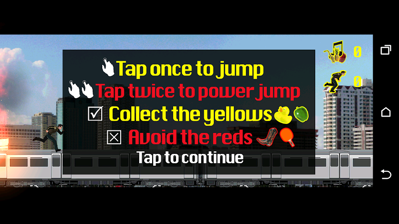 Vyšplhejte na vrchol vlaku a zahájíte tento zážitek z přežití! Běh přes vlak a klepnutím, abyste se vyhnuli zasažení červenými pohyblivými překážkami. Váš cíl? Shromažďujte co nejvíce žlutých položek a přežijte co nejdéle! desky